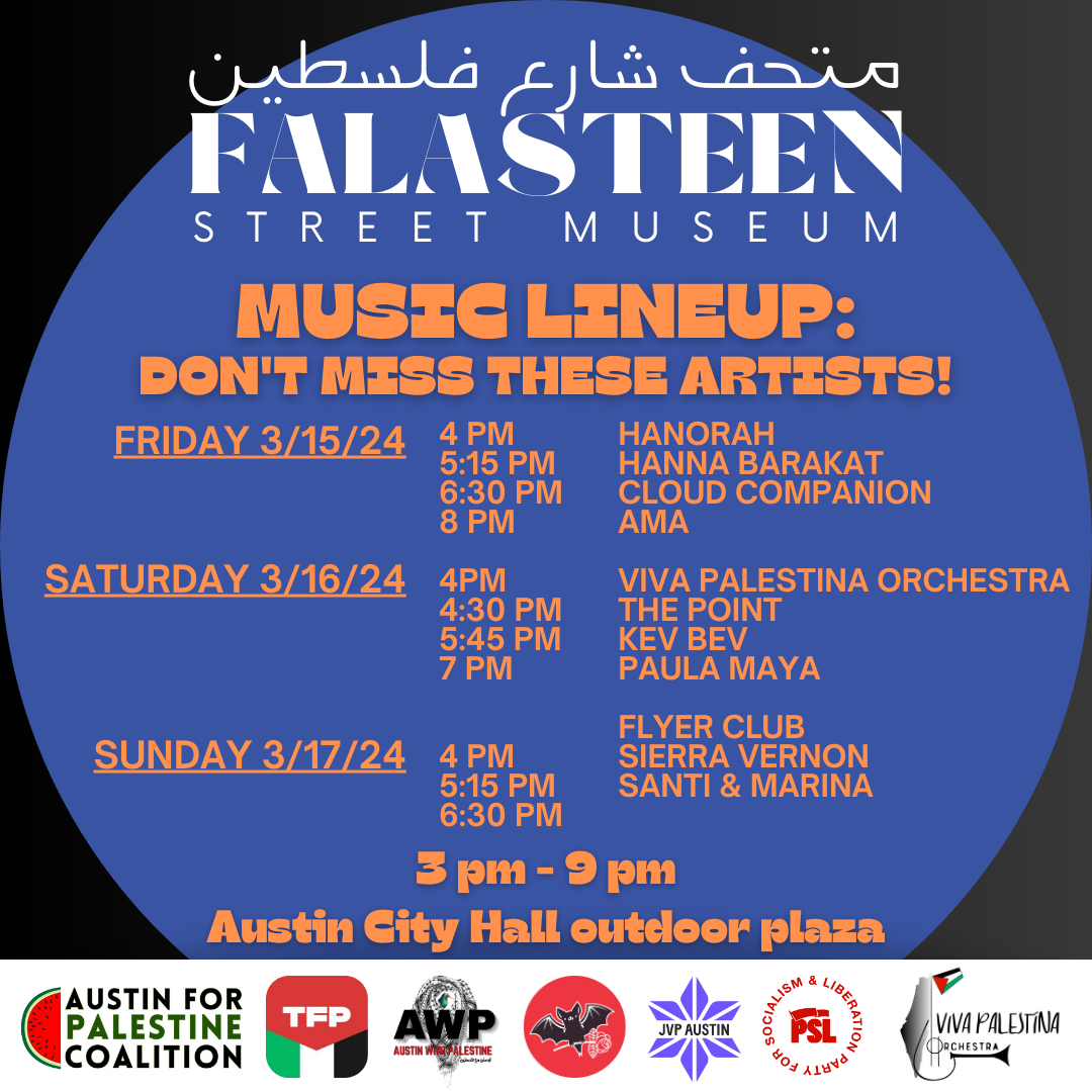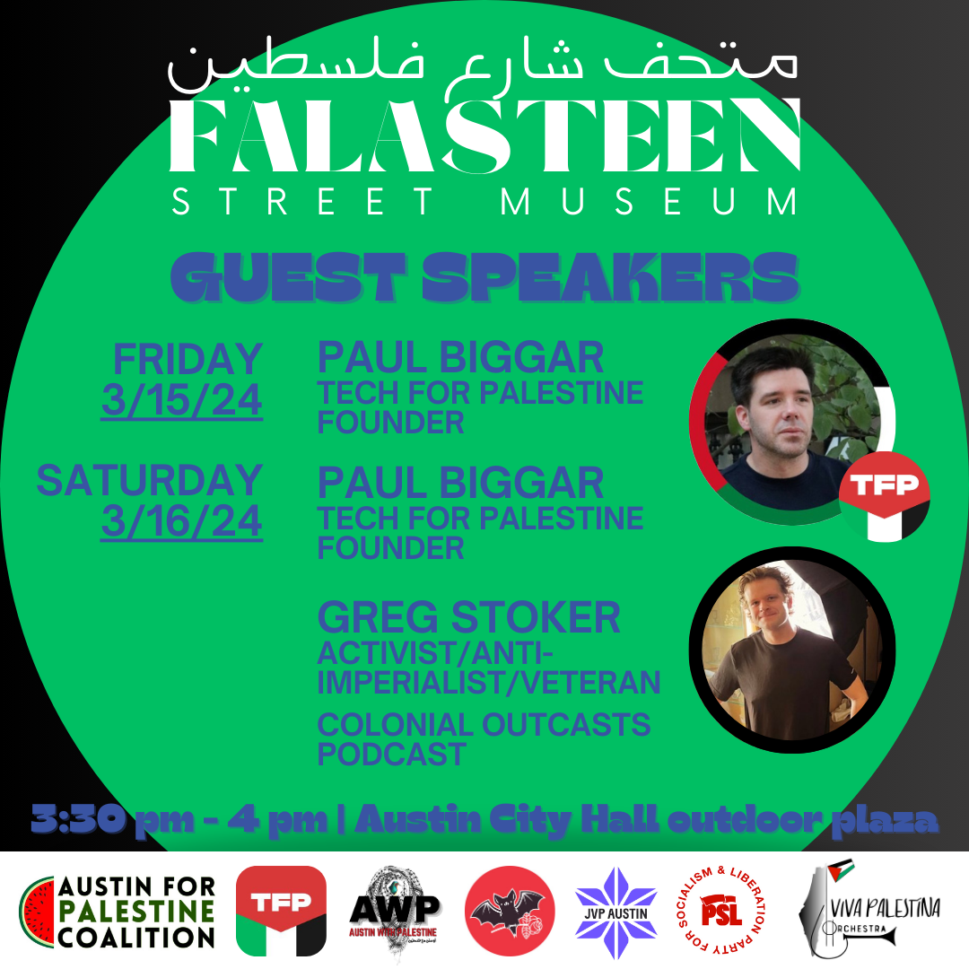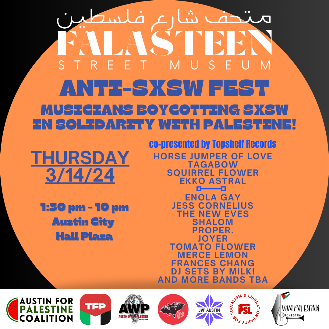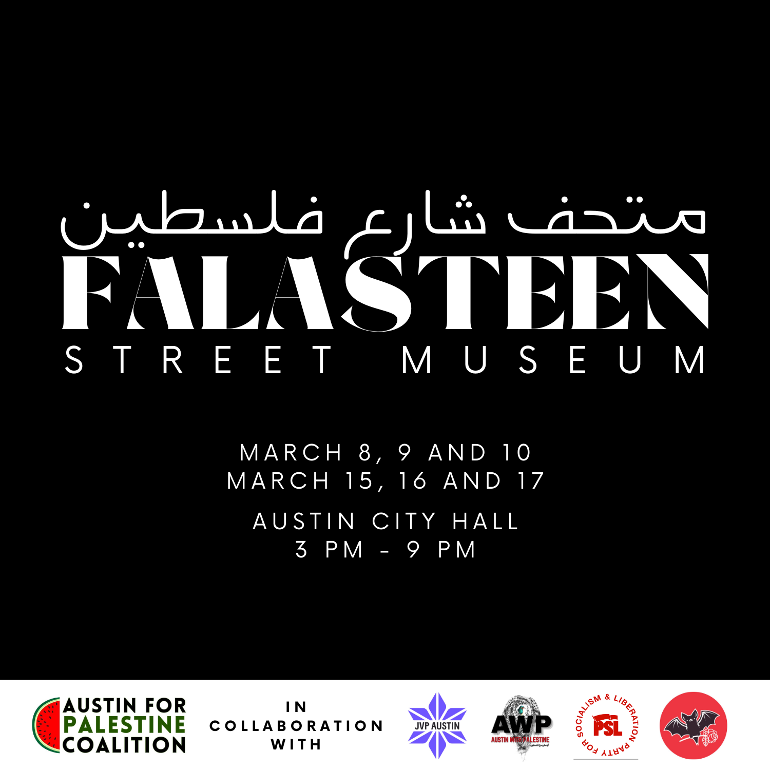 Austin For Palestine Coalition – in collaboration with AWP, JVP Austin, DSA Austin, and PSL Austin presents the Falasteen Street Museum pop-up event during SXSW!